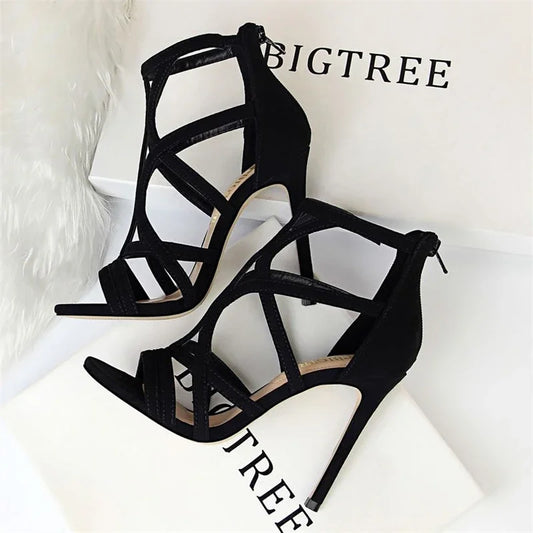 New Cross-strap Roman Sandals Suede High Heels Women